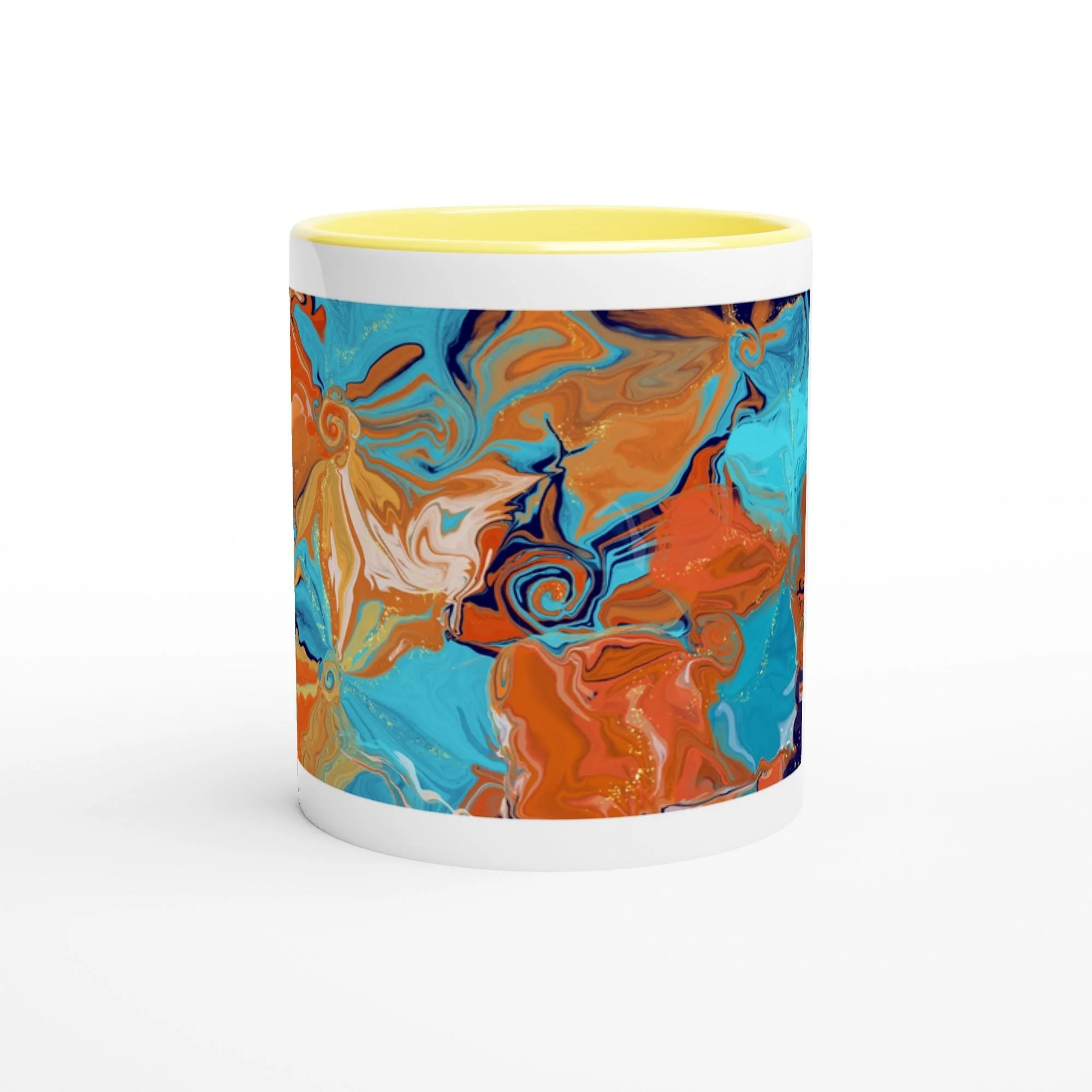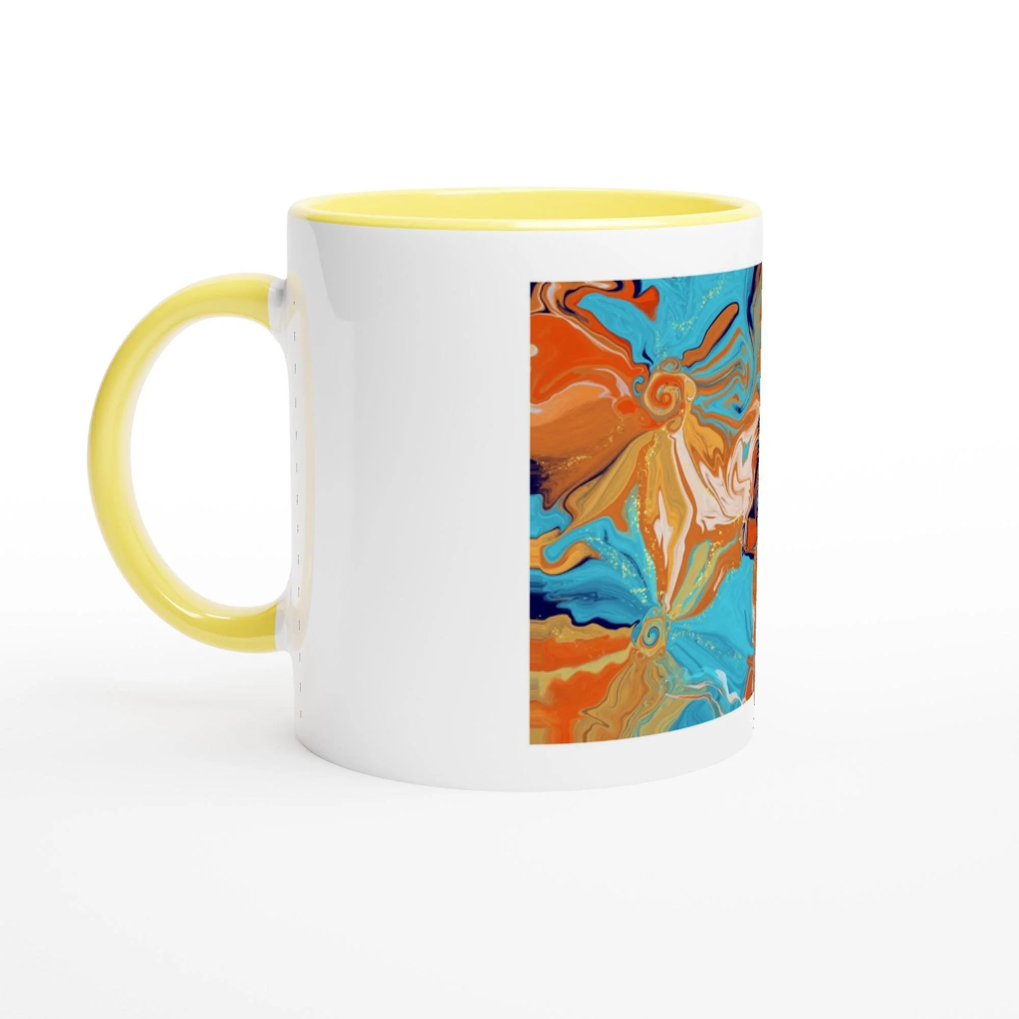 This beautiful ceramic mug is perfect for any event of the day. Your morning coffee, a hot chocolate, or any other hot beverage you enjoy. The mug is glossy white with a colored rim, inside, and handle. The prints come out beautifully and vividly on it. The print retains its quality and luster when used in both microwaves and the dishwasher. - Ceramic 11oz mug - Dishwasher and microwave safe - Colored rim, inside, and handle - White print area